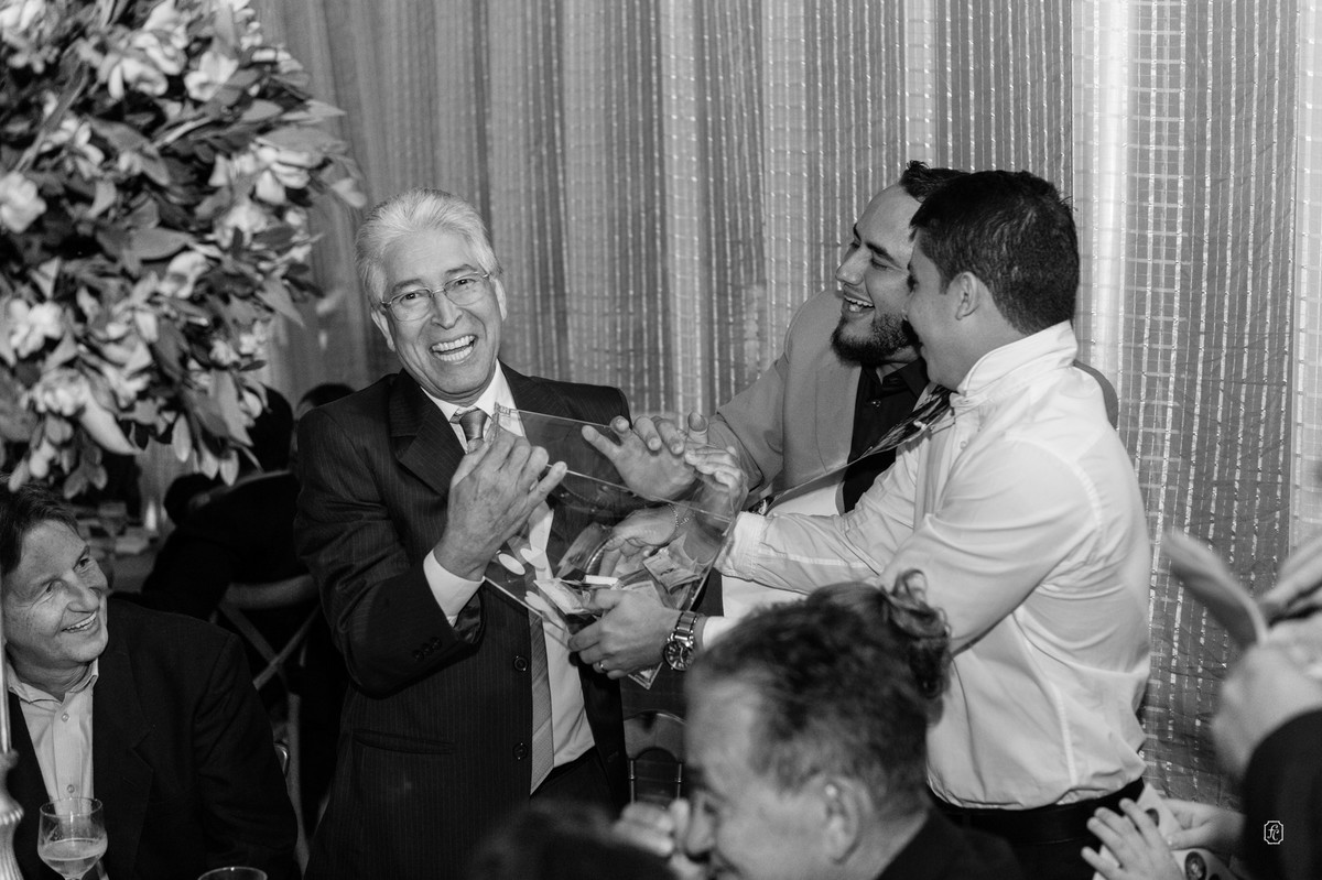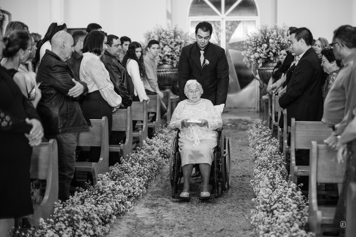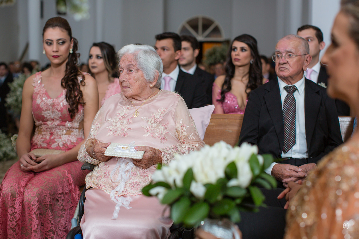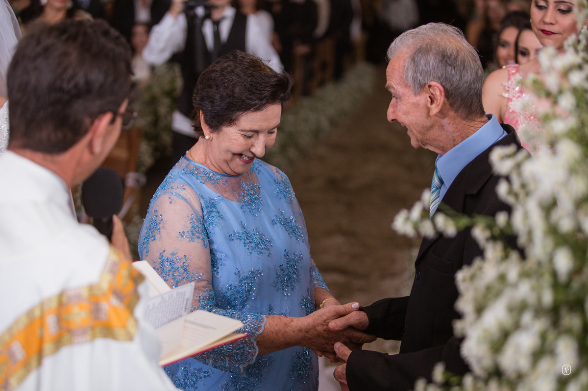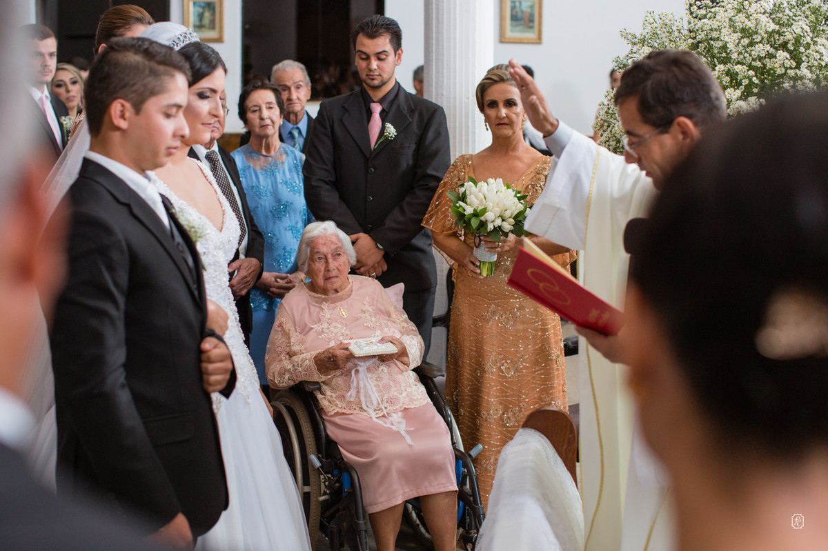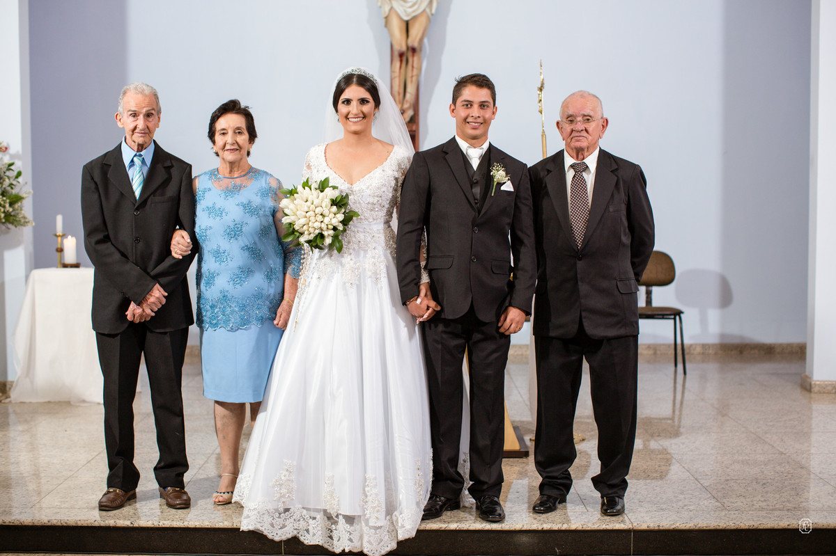 A cerimônia foi muito especial e emocionante, num dado momento a Isabela convidou os avôs, Dona Maria e Sr. Osmar, que comemoraram 50 anos de casados para que fizessem parte da cerimônia também. Daí fica claro como a família é importante para eles.